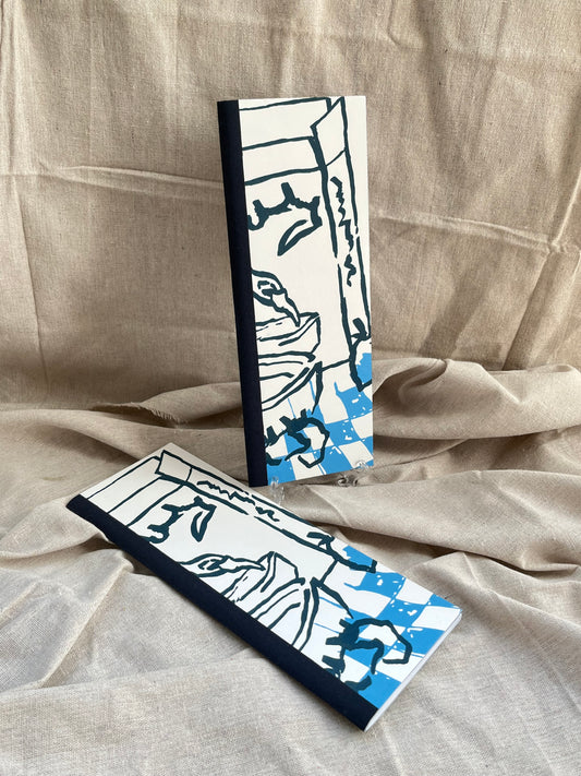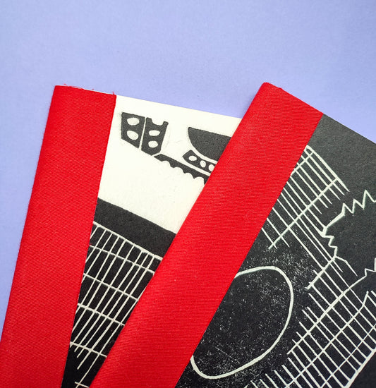 Todas las libretas que aquí aparecen están encuadernadas artesanalmente. Son ejemplares limitados, de tiradas muy pequeñas, ya que se crean a partir de pruebas de grabados descartados, junto con papeles nuevos y/o reciclados.
